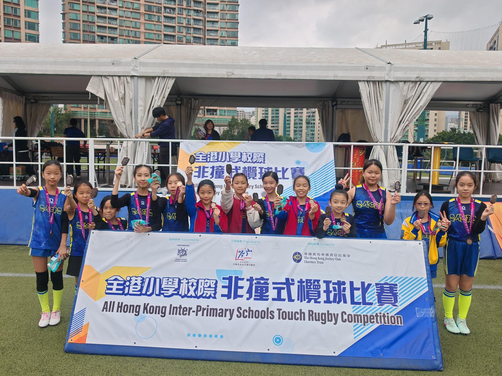 在「第八屆全港小學校際非撞式欖球比賽 2025-2026 」 本校欖球隊獲得女子組季軍 六禮陳玥融更獲得傑岀運動員