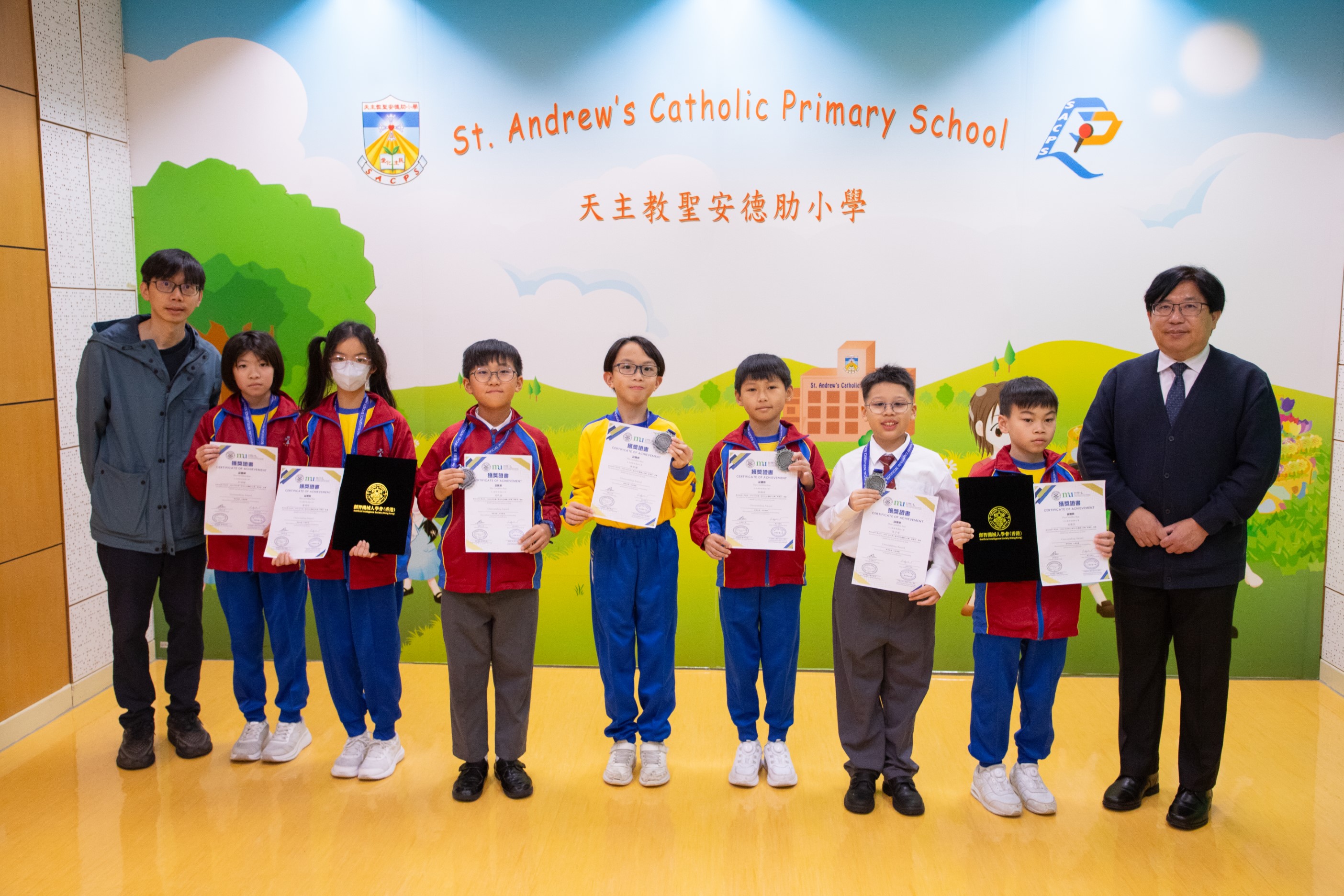 本校兩隊機械人隊伍於1月24日參加創智盃VEX IQ 機械人大賽2526,八位參賽同學均能進入決賽,最後獲得最佳表現獎(Outstanding Award)。