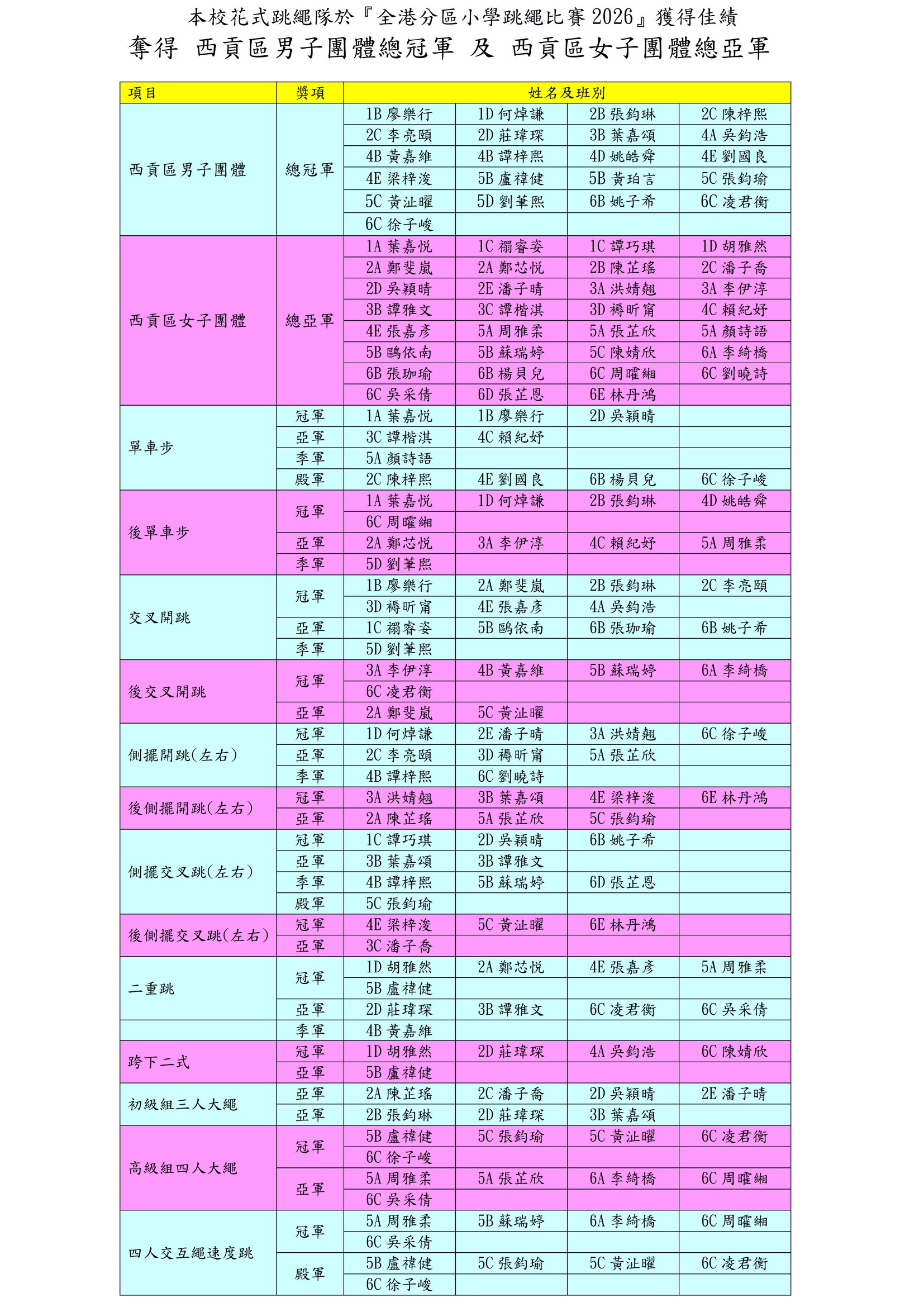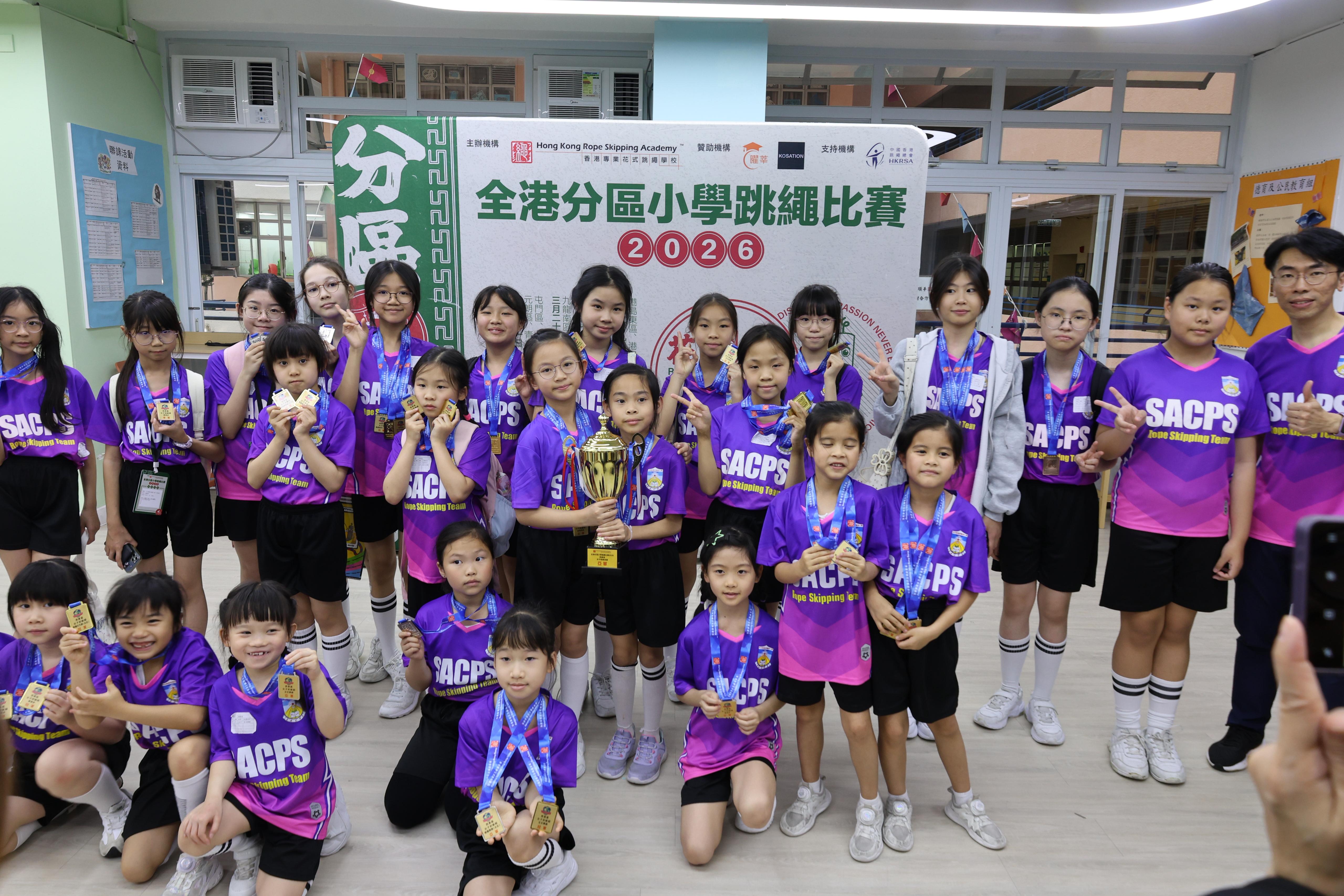 本校花式跳繩隊於『全港分區小學跳繩比賽2026』獲得佳績 奪得 西貢區男子團體總冠軍 及 西貢區女子團體總亞軍