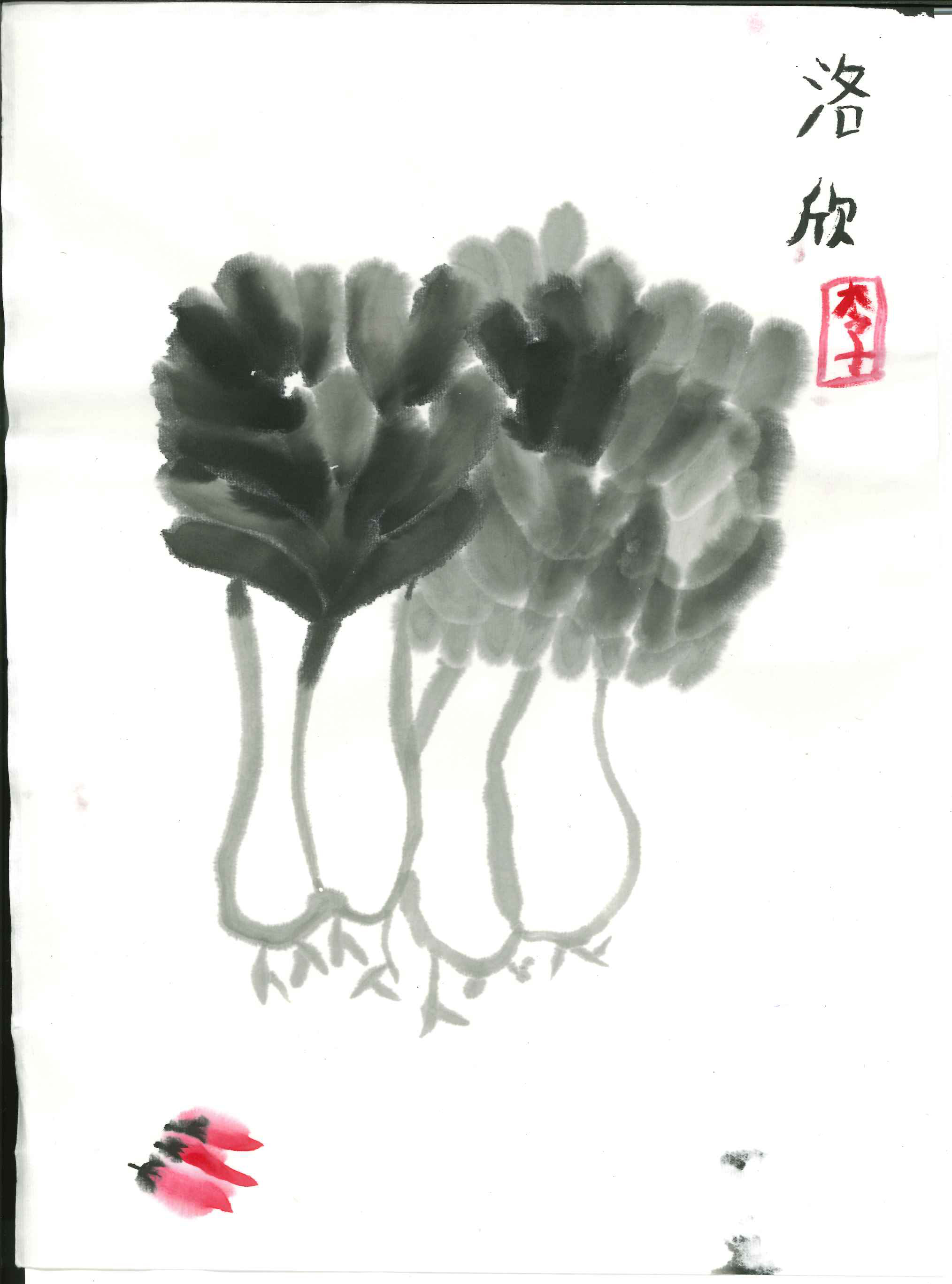白菜和辣椒(水墨畫)