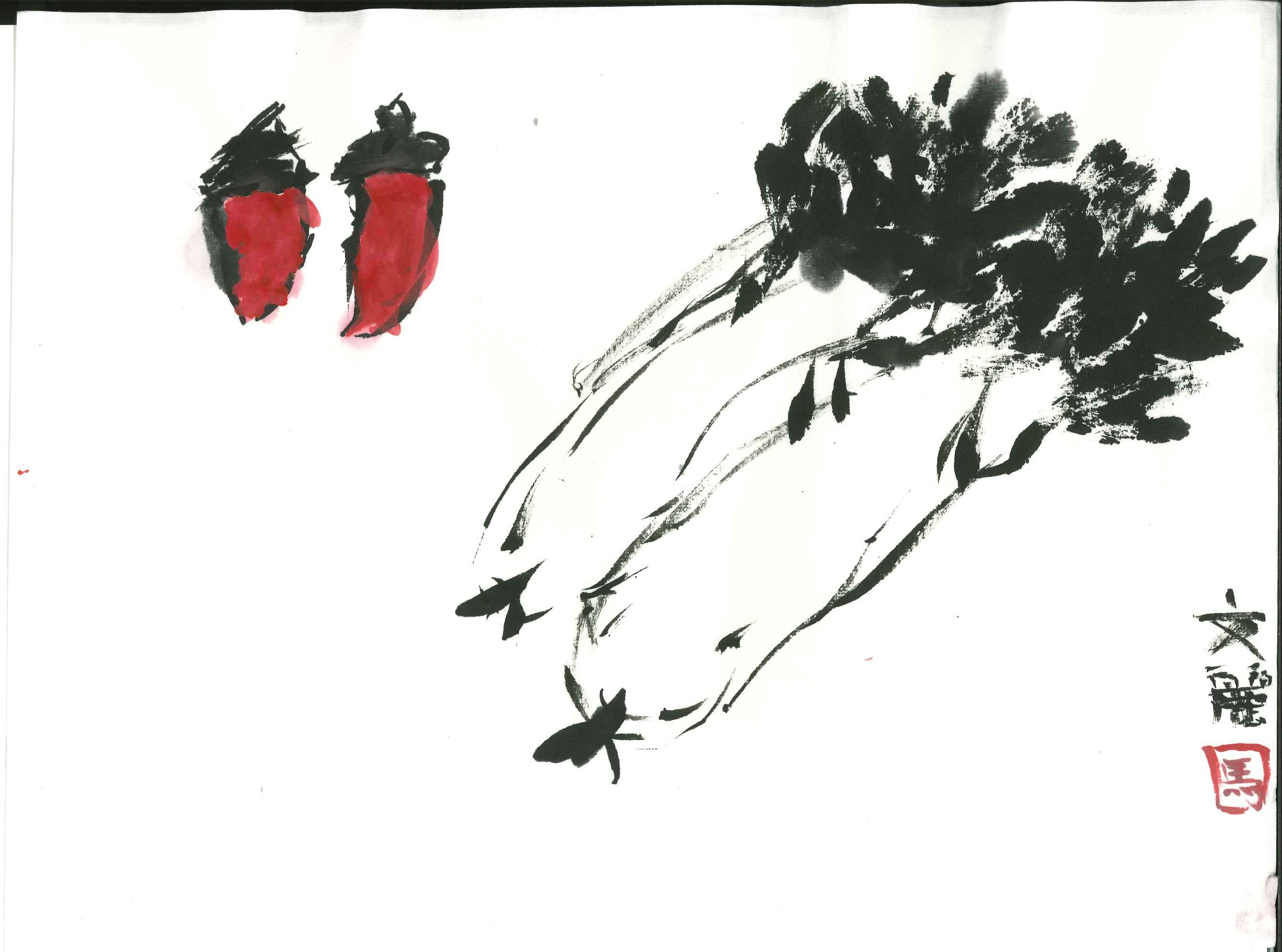 白菜和辣椒(水墨畫)