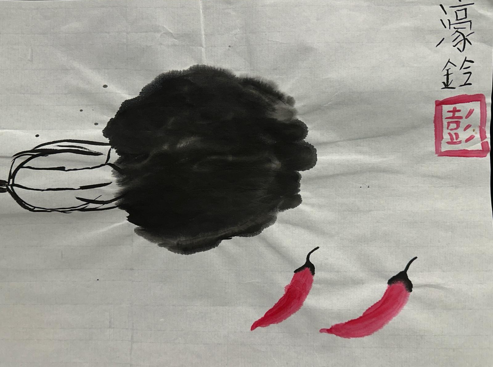 白菜和辣椒(水墨畫)